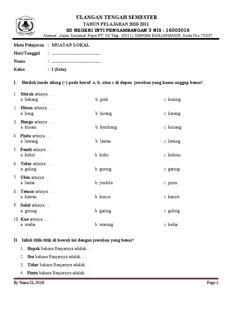 Soal uts mulok bhs jawa kelas 6 semester 2docx soal uts mulok bhs jawa kelas 6a semester 2docx. Soals-soal latihan tik mulok kelas 5 SD semester 1 silahkan dilihat pada posting terdahulu. Orang Dayak tinggal di daerah.